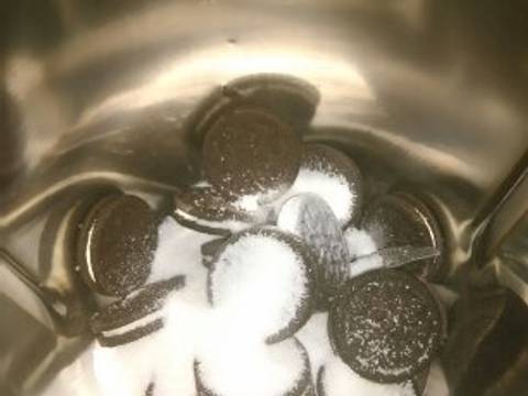 • Poner los dos tipos de azúcar y las galletas oreo 15 segundos velocidad 10.